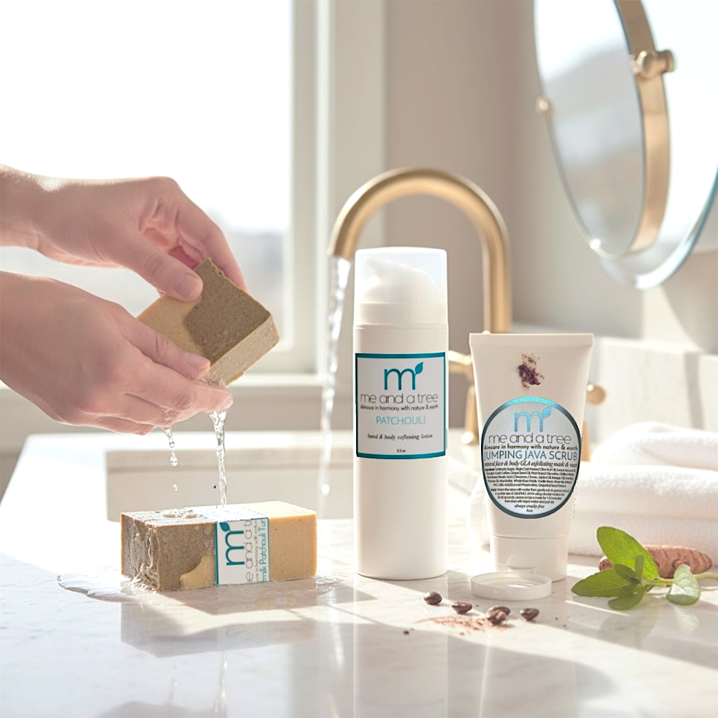 Indulge in a rich, earthy, sensory spa experience with our Patchouli Ritual Set — a luxurious trio crafted for patchouli lovers and anyone craving a warm, grounding, skin-softening winter ritual. This set combines the deep moisture of our deep skin penetrating Patchouli Lotion, the luxurious lathering aromatic cleansing of our Goat Milk Patchouli Turmeric Soap, and the skin-sloughing and brightening polish of our Jumping Java Exfoliator for face and body.